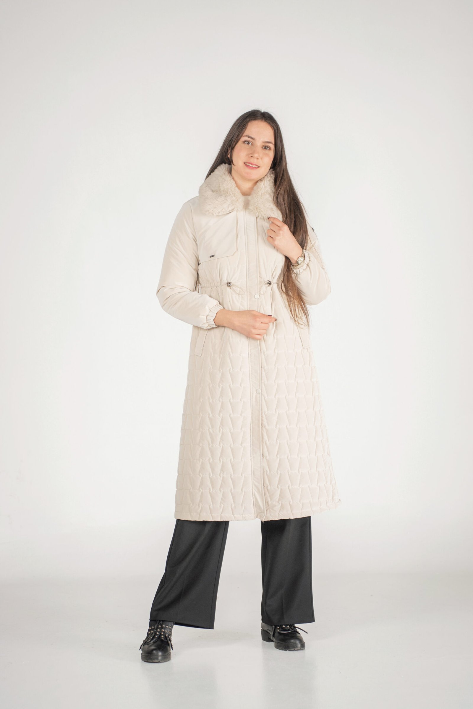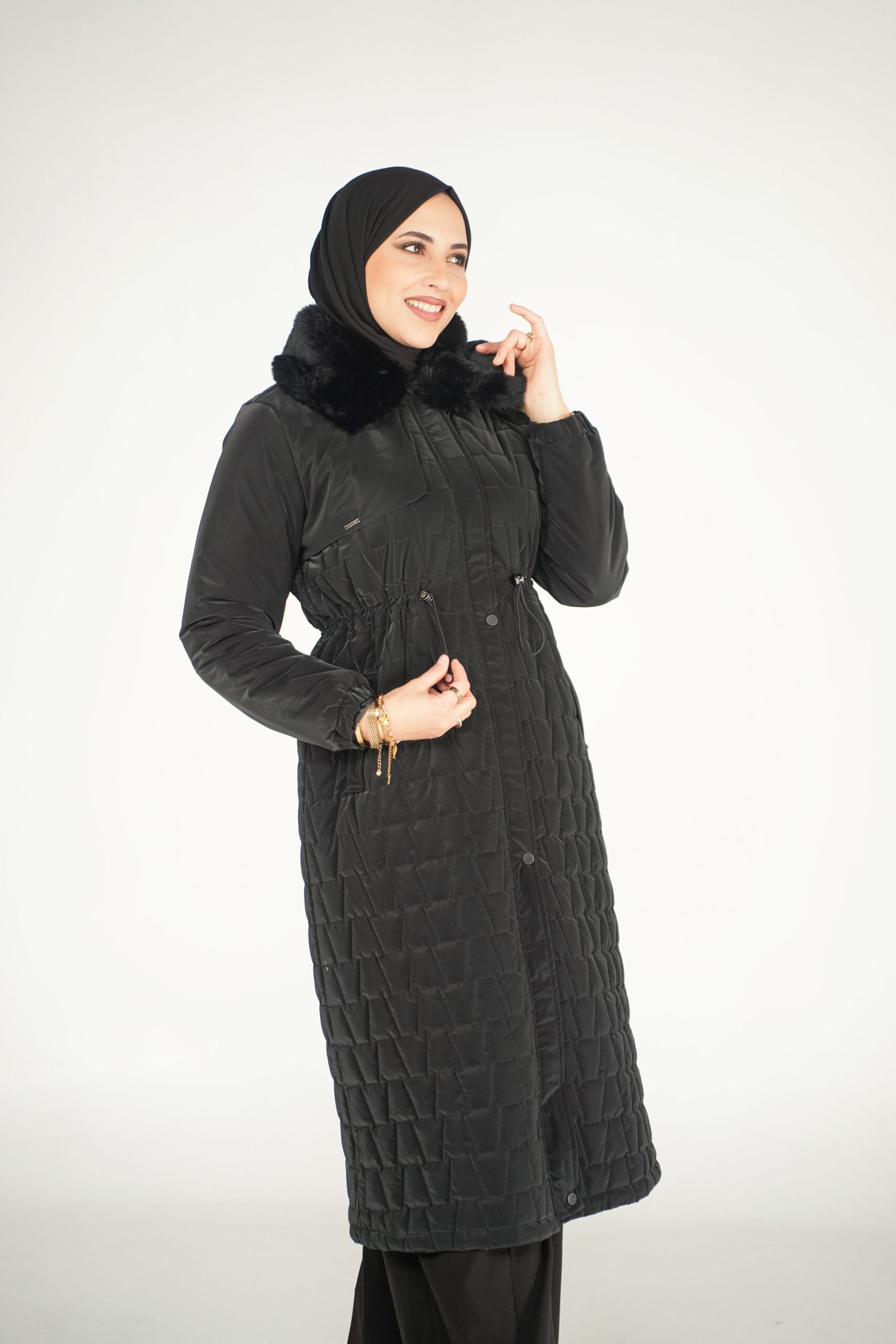 Manteau long , matelassé et subtilement structuré pour une allure sophistiquée.
